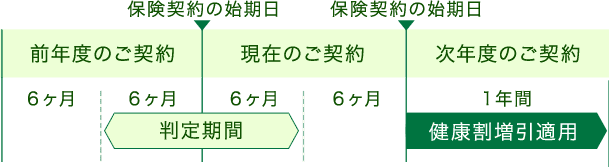 後日新たに判定期間中の保険利用が確認できた場合は、適用される健康割増引率が変更になることがあります。